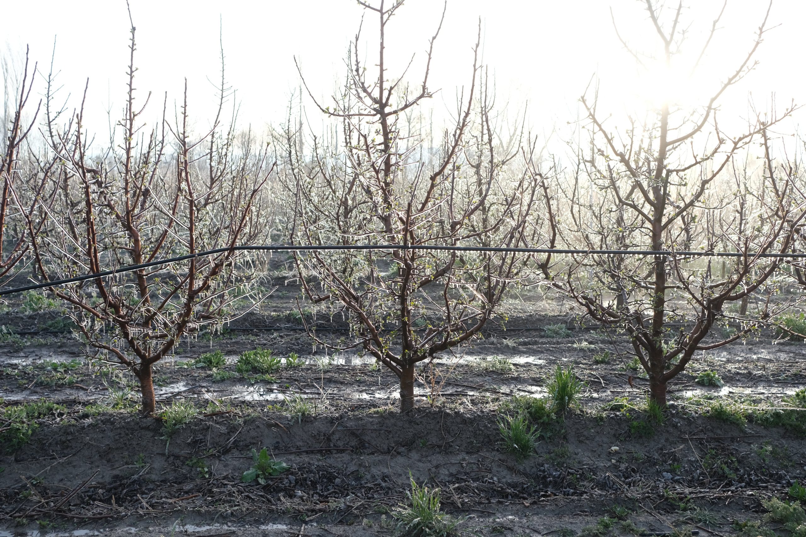 Çiftçilerden soğukla mücadele: Ağaçlara buz uygulaması